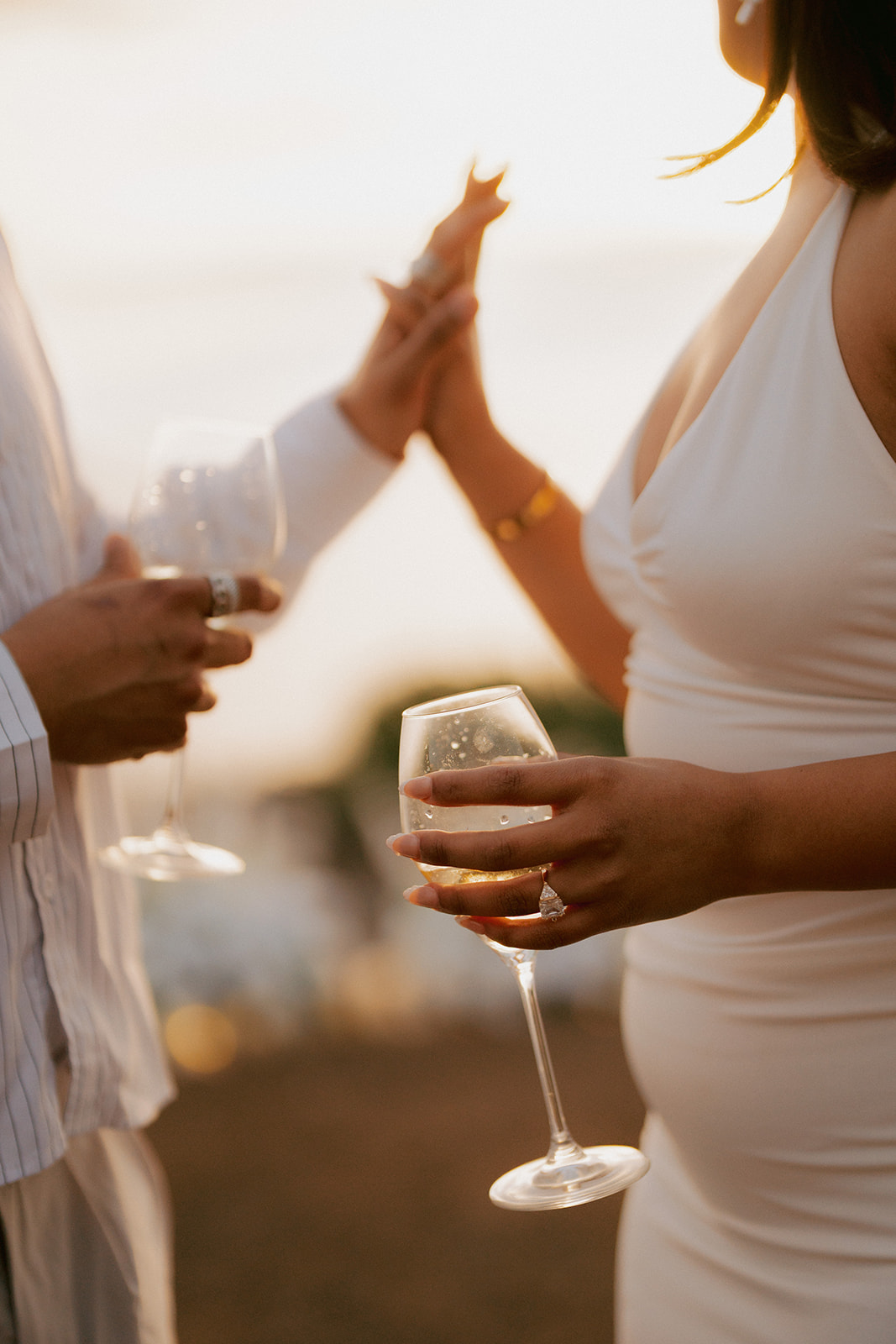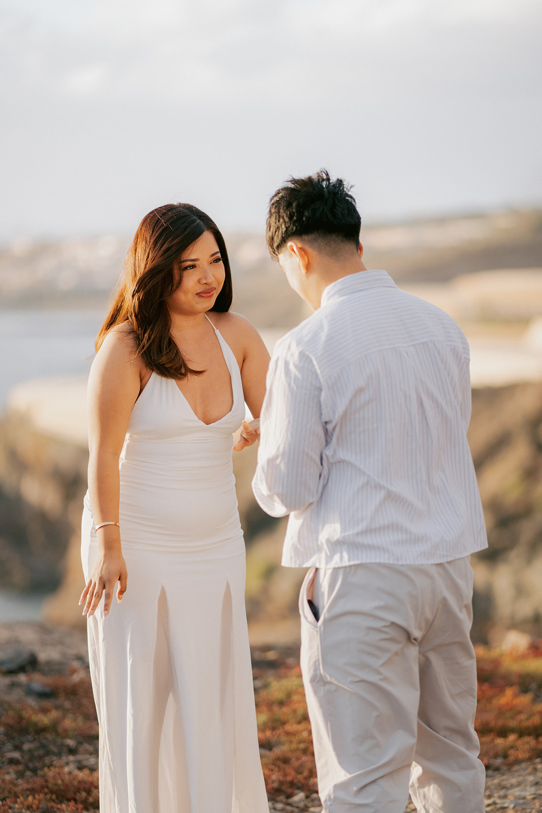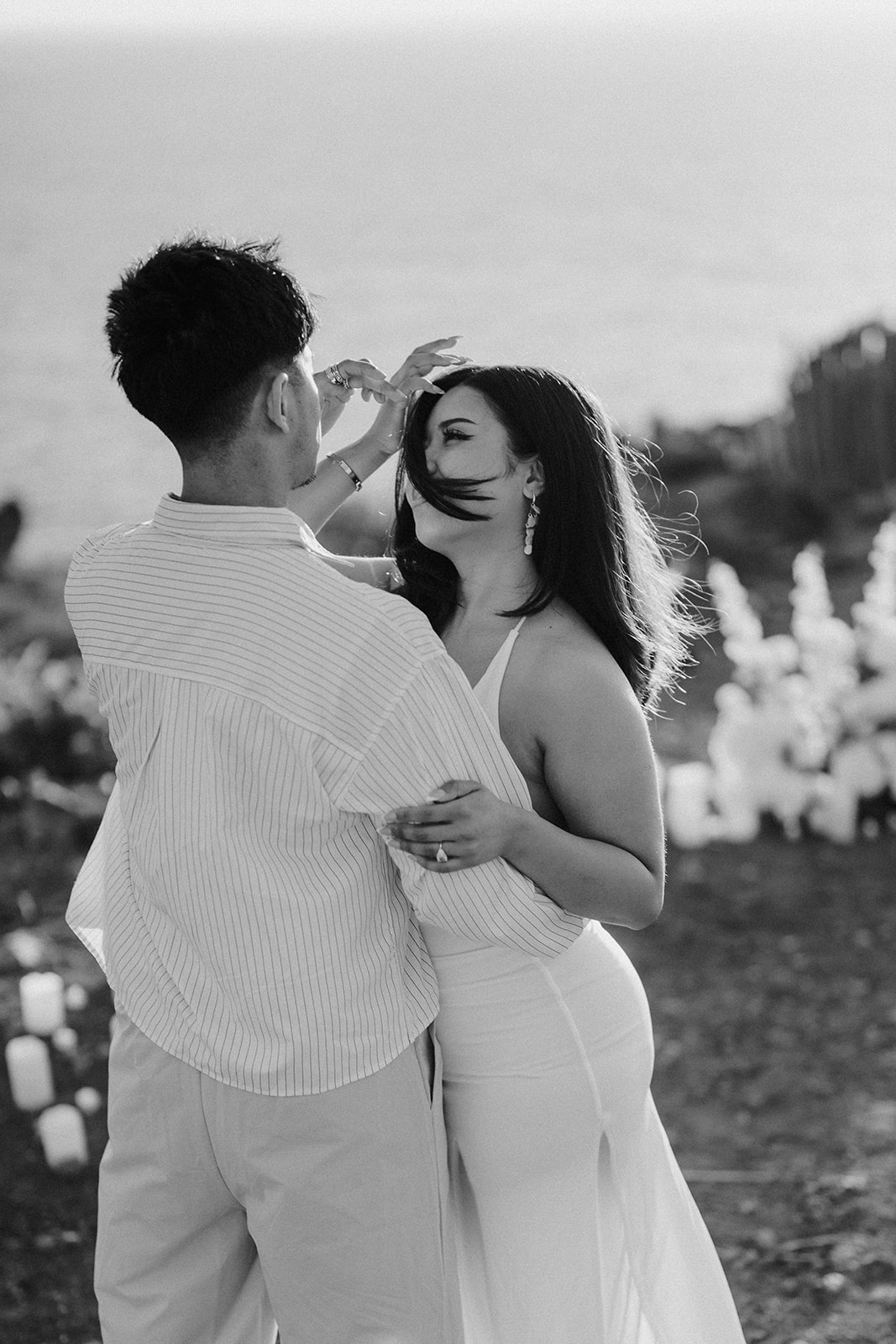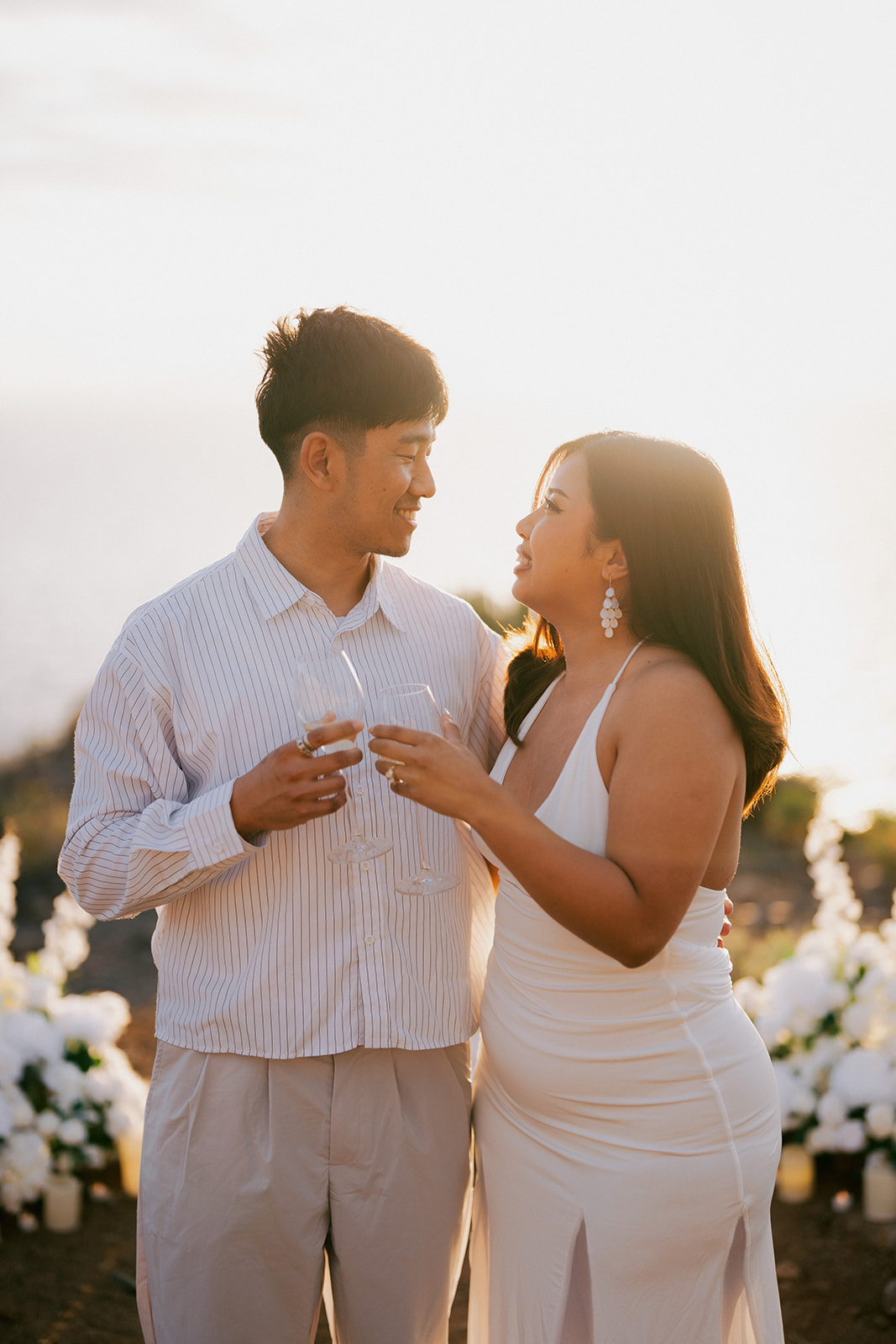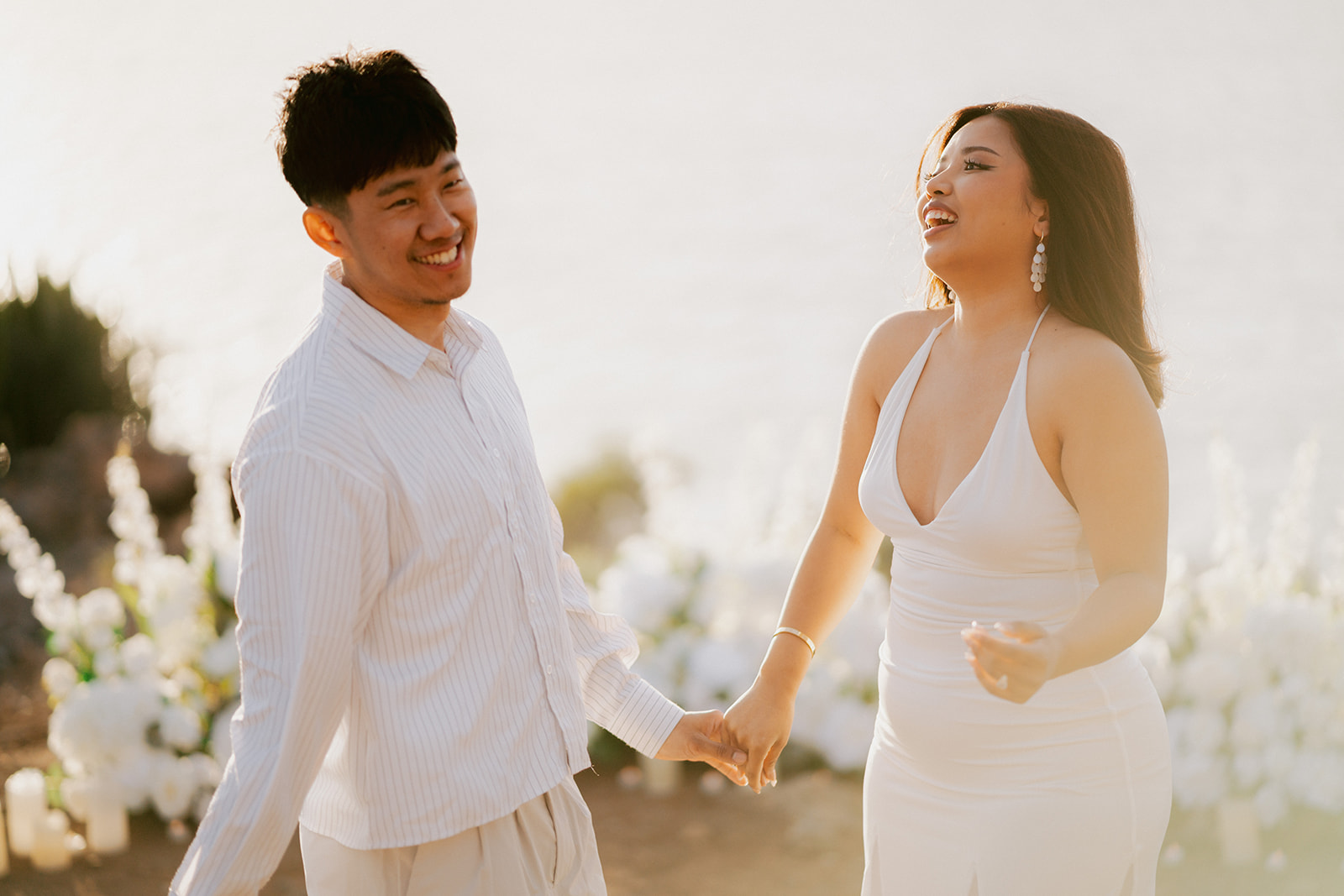 And yet, as it often happens in moments like these, the world seemed to fade into the background. In the end the view over the cliffs was so beautiful in itself, that the big question was asked before the sweet couple reached the decorated spot. Of course, she said “yes!”—and just like that, it became the beginning of a beautiful evening and the start of a new chapter together.